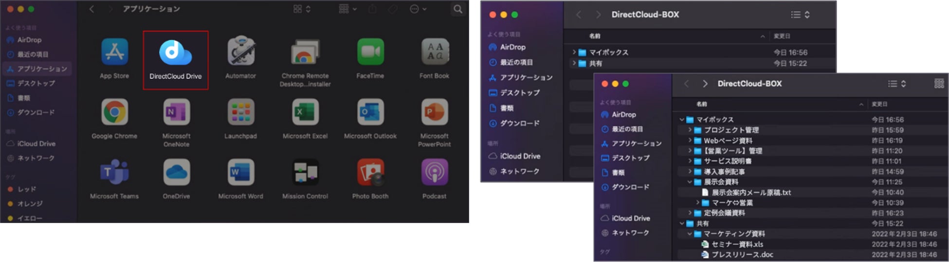 Finder上でDirectCloud ドライブが利用可能となり、作業効率の向上を実現。